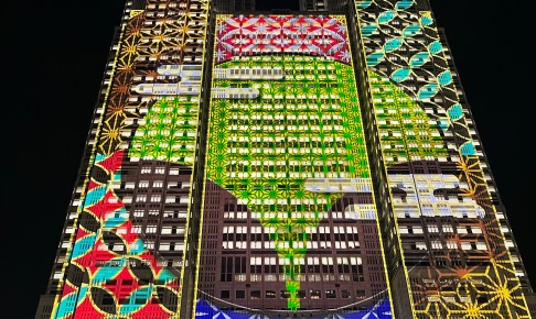 プロジェクションマッピング✨️ イチョウは東京都のマーク。 寝転んで見てる人もいたけど それが正しい見方?